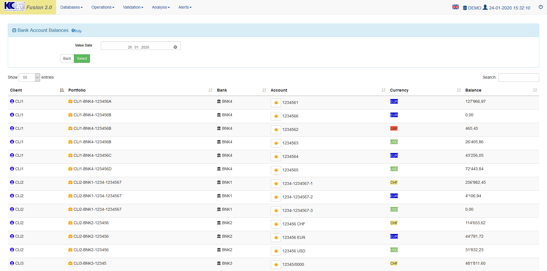 Enter the value date of the bank account balance, by default d+2
